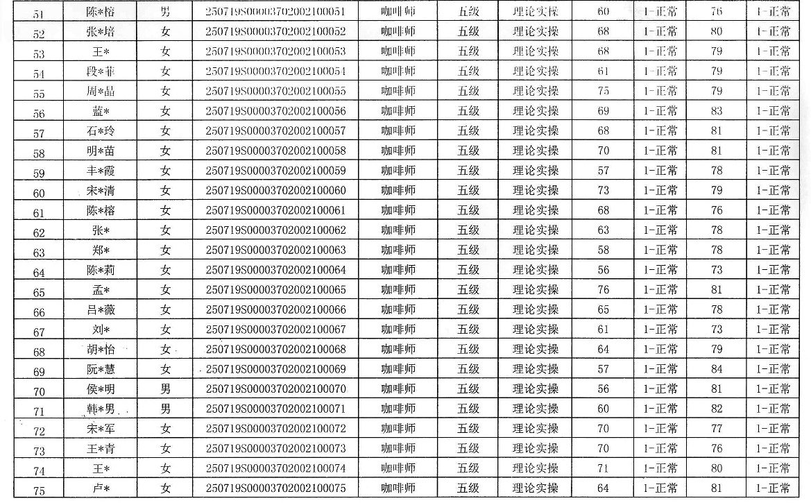 2025年7月咖啡师职业技能等级认定成绩公示